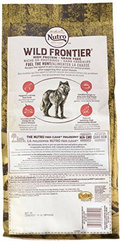 NUTRO WILD FRONTIER Dog Food offers a grain-free, high-protein diet for your adult dog's natural instincts. This great-tasting dry dog food satisfies your dog's hunger for protein with real Salmon as the 1st ingredient and provides the steady energy they need to run and play all day. Feed your dog what they instinctually desire. NUTRO. FEED CLEAN.