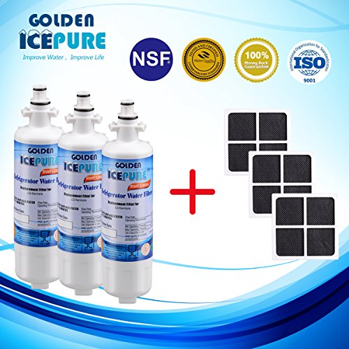 Golden Icepure RWF1200A-3PACK+AF004-3PACK Water Filter Compatible With LG LT700P, ADQ36006101,LT120F,Kenmore Elite 469918 Replacement Refrigerator Air Filter