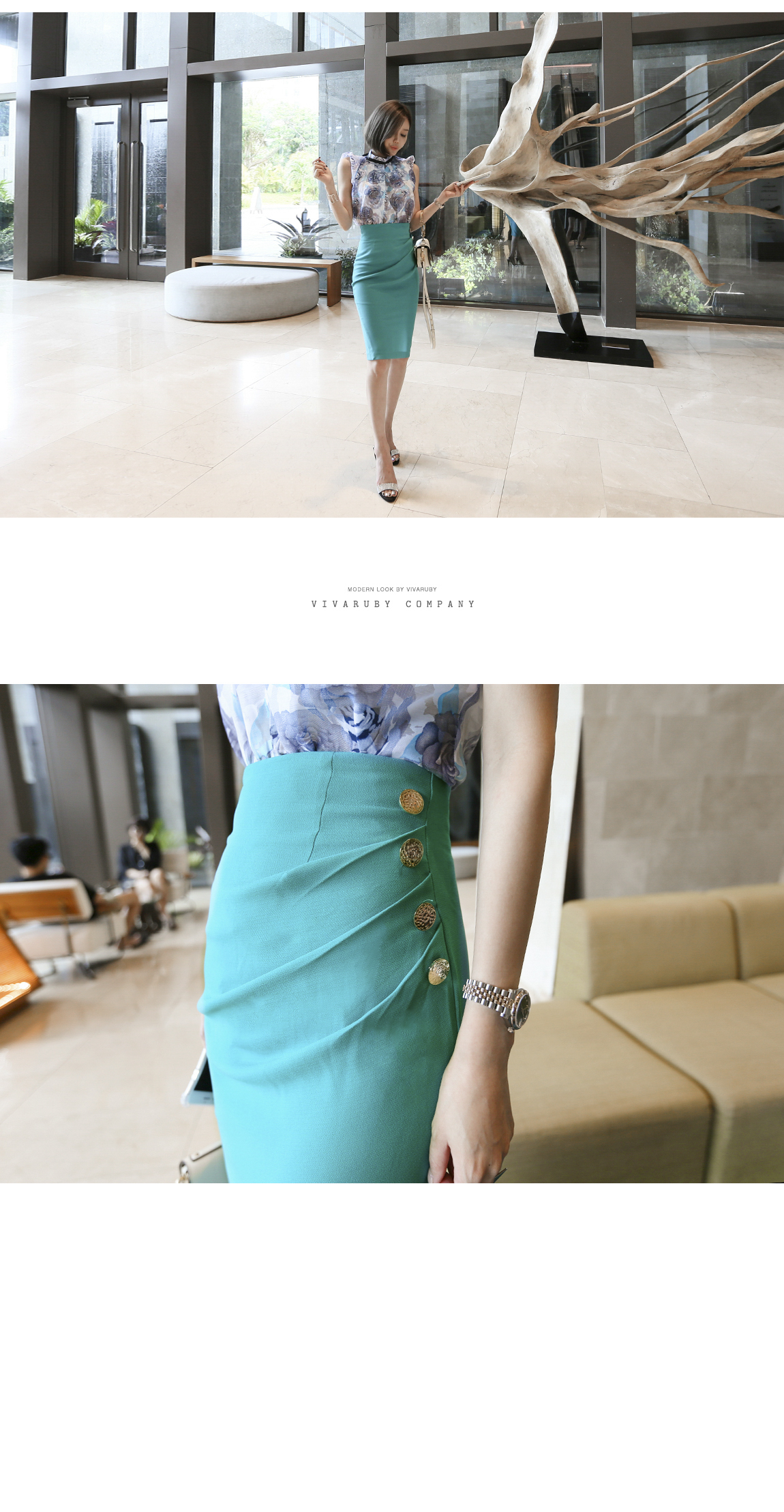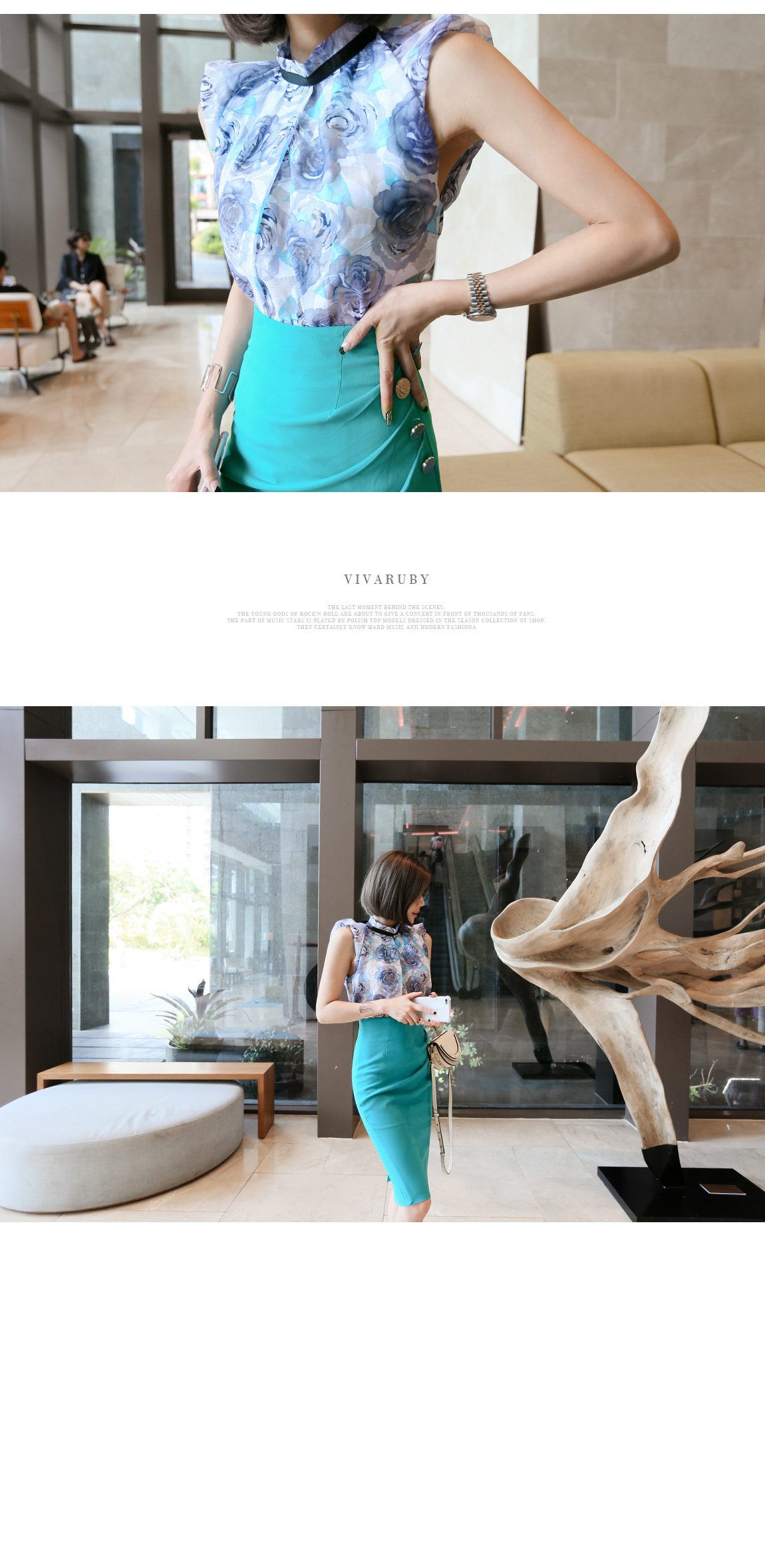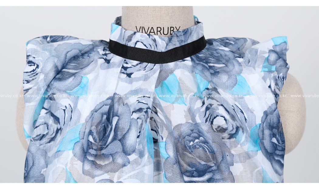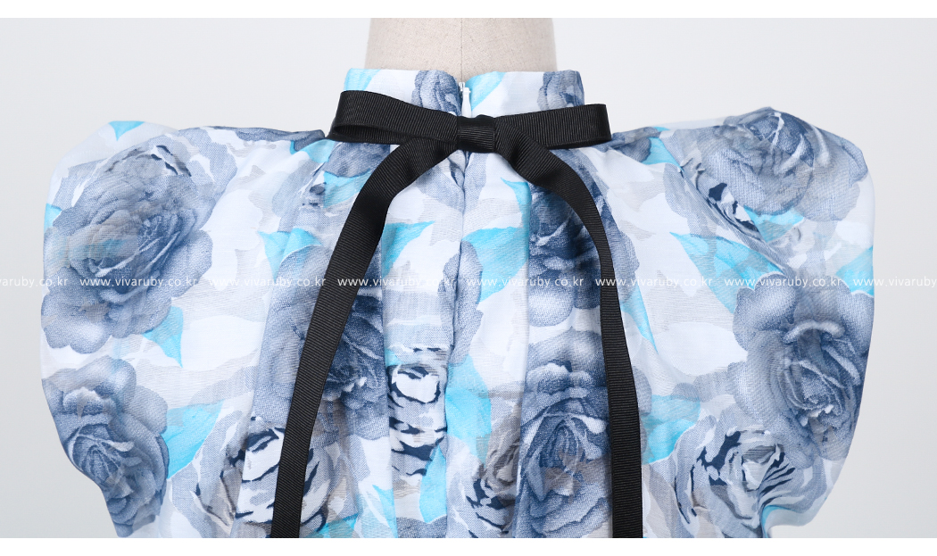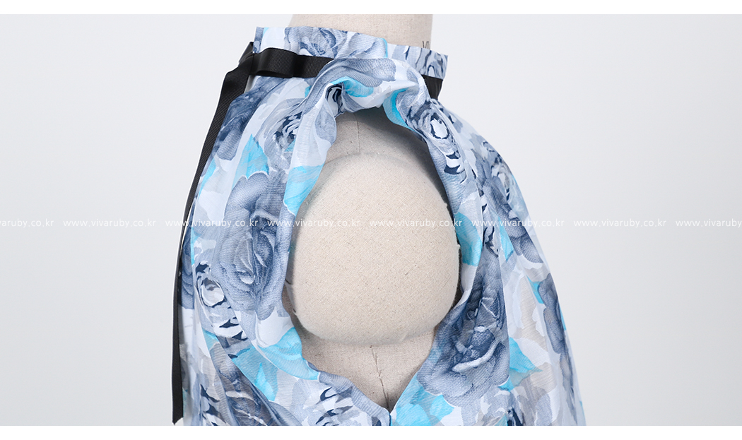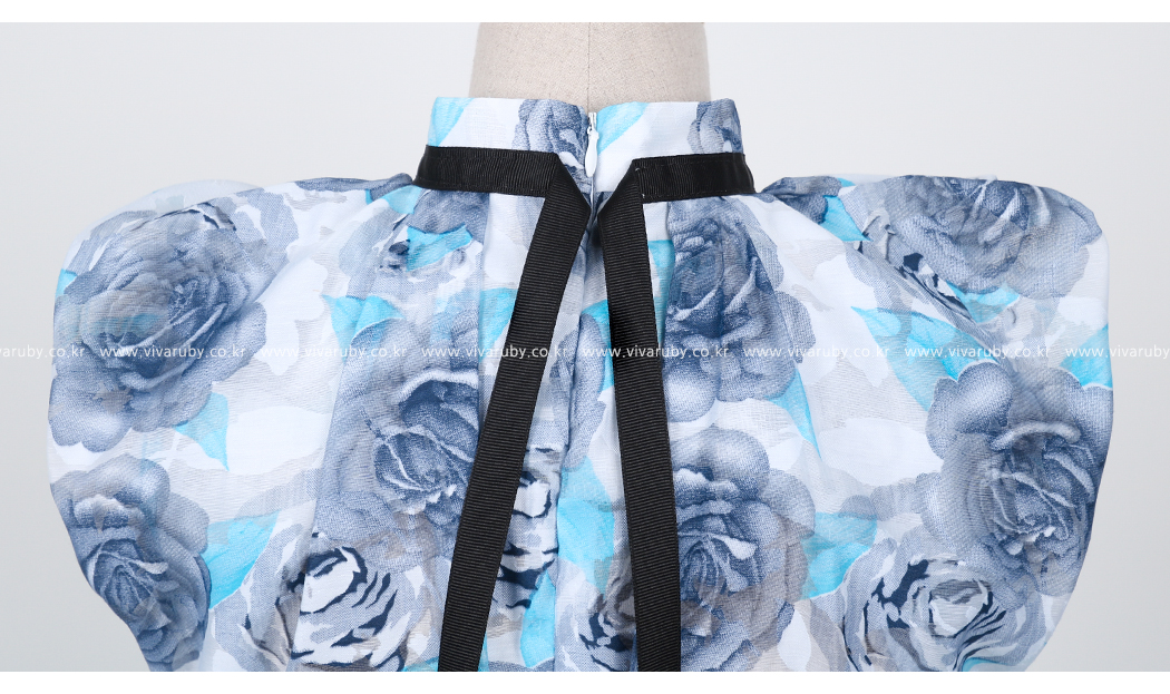 ネックのラインに沿って続くシャーリングはボディーボリューム感を