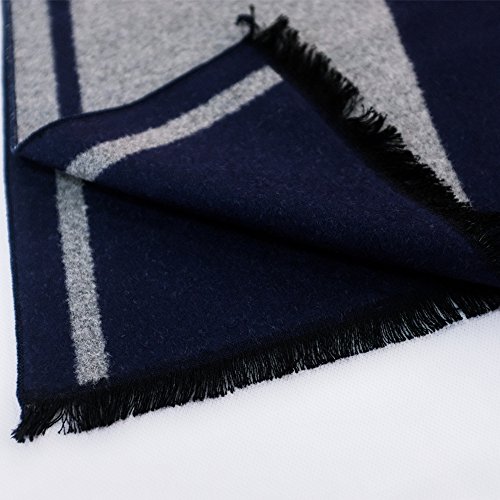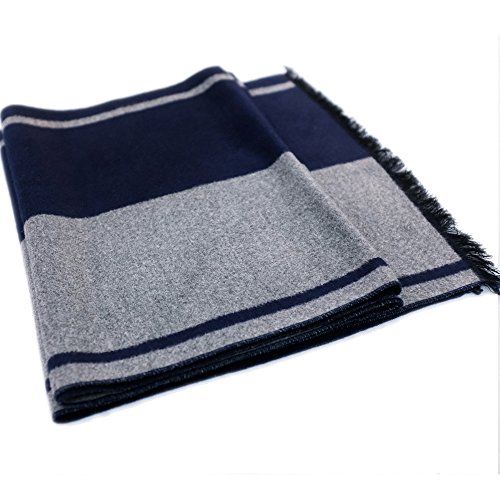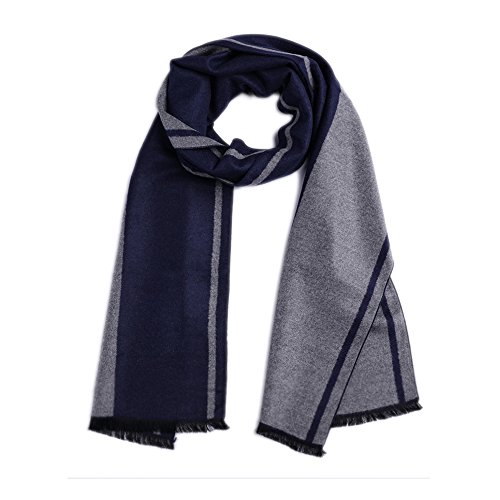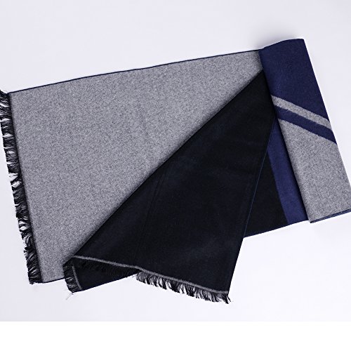 CICI RAN Men Two Tone Reversible Cashmere Feel Winter Scarf Grey Navy