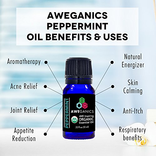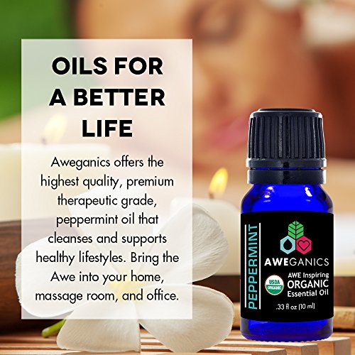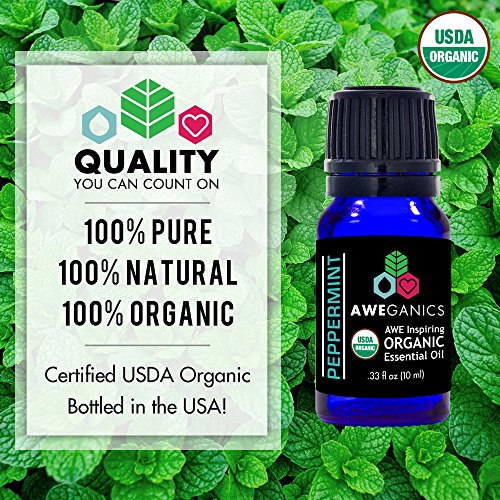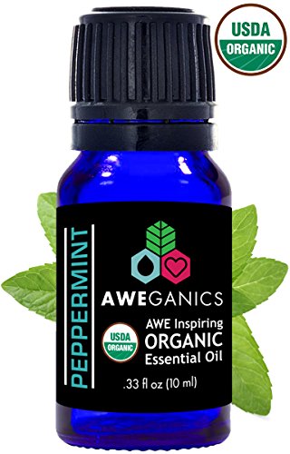 Best Organic Peppermint Essential Oil - USDA Organic Essential Oils by Aweganics, 100% Pure Natural Premium Therapeutic Grade, Aromatherapy Scented-Oils for Home, Personal Oil Use - 10 ml MSRP $14.99