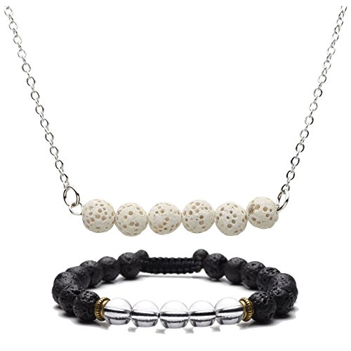 Package List: 1 lava stone chakra diffuser bracelets,1 Lava Stone Metal Necklace,1 gift box. Each order comes with a Top Plaza velvet jewelry pouch. A perfect gift for Christmas/Mother's Day/Father's Day/Birthday/Wedding/Graduation/Valentine's Day!
