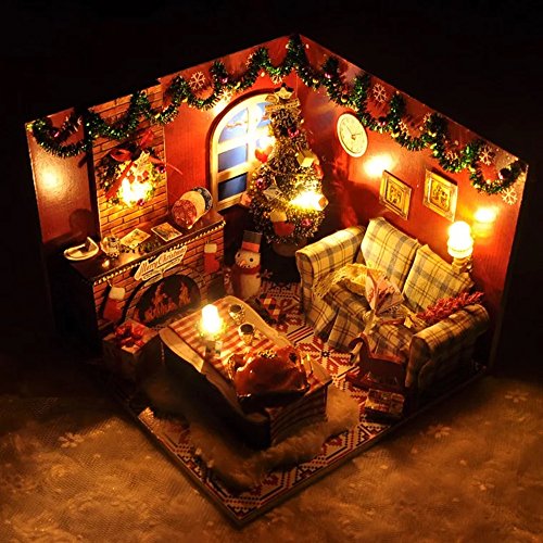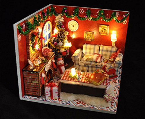 -. Feature : The assembly is suitable for people older than 10 years and need about 2 days.Recently some customers raise a question that it is too hard to assemble it.For this question,we will tell you do not be afraid of this chanllenge.You will get the joy after you have finished assembling it. / Finished assembly product size:6.3*6.3*5.1 inches Package includes all the furnitures and accessories in the pictures,including the Dust Proof Cover and the music box,which is Merry Christmas / IMPOTANT NOTE:IF ANY QUESTIONS OR MISSING PARTS FOR ASSEMBLING,please write to us for help.We will right here waiting for you to solve your any problem.The instruction is in Chinese,so we will send the English Instruction to you by e-mail.Each steps has been clearly showed in the instruction with pictures to guide you to DIY the house. / It's very perfect gift for the Christmas.You could do it by yourself to make the gift more meaningful! / Note:Glue and batteries are not included in the package because they are not permitted to ship by Air Transportation. So please prepare it by yourself.You'd better choose Silicone Liquid Glue.