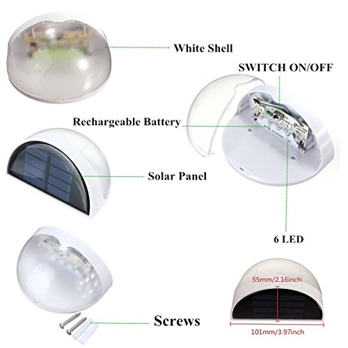 - ▶Bright 6 LED: 6 LED Solar powered lights, energy-efficient, low-maintenance solar lights. With light sensor, automatically turn on at night and turn off at daytime. The soft light turn the dark space into a lighted space.