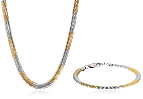Women's Two-Toned 18kt Gold Plated Stainless Steel 2 Piece Necklace and Bracelet Set