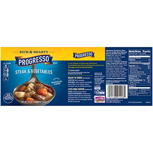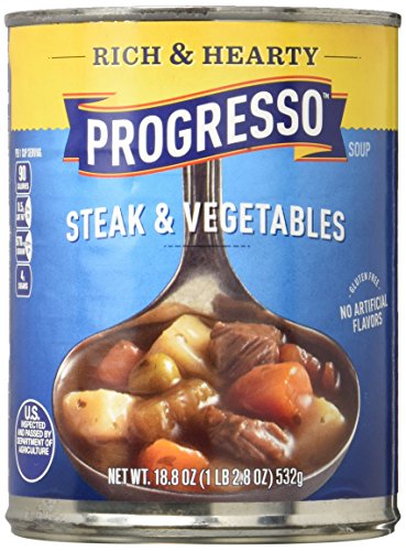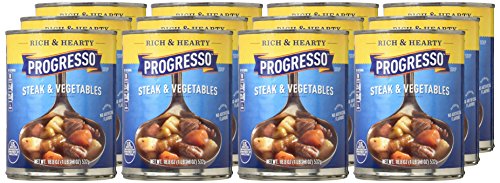 Progresso Soup, Rich & Hearty, Steak and Vegetable Soup, 18.8 oz Cans (Pack of 12)