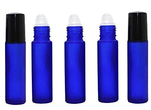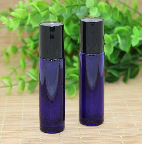 6PCS 10ML /0.34oz Ounce Glass Roller Bottles Container Holder Essential Oil Perfumes Jars Refillable Cobalt Blue Glass Empty Perfume Roll On Bottles