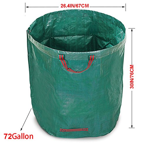 - 72 gallon garden waste bag, Diameter 67cm/26.4 IN, High 76cm/ 30 IN, Handle width: 3.8cm/ 1.5 IN. The bag weighs about 380g/0.84 LBS.