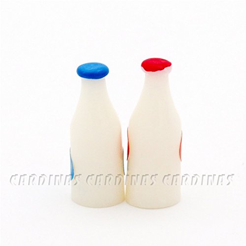 -. Title : Odoria 1:12 Miniature 2PCS Milk Bottles Red and Blue Dollhouse Kitchen Accessories