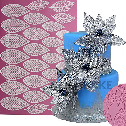 - √ Finished edible lace leaf size are: biggest - 4.4x2.2 inches (11.1x5.4 cm) / Middle: 3.8x1.8 inches ( 9.6x4.6cm) / smallest: 2.65x1.25 inches (6.7x3.2 cm), Color: Blue / Total product size: 17.3 x 11.65 inches (44 x 29.4 cm)/ Depth: 0.25 cm, weight: 9.45oz (268g)