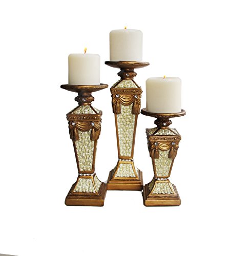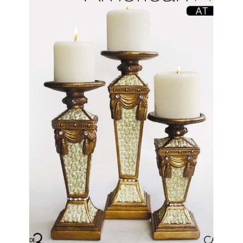 Studio : The Jay Companies Publisher : The Jay Companies Binding : Kitchen Product Description Illuminate your home with this candle holder set from American Atelier. It is made of resin and comes in three varied sizes. Use individually or group together for a spectacular glowing candle light scene! Candles not included. 0