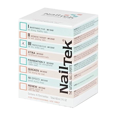 -. Binding : Health and Beauty -. Brand : Nail Tek -. EAN : 0794437465241 -. Feature : Protection Plus helps nails regain the healthy balance necessary to resist stress and enhance survivability / This special formulation replenishes the natural moisture content of the nail. Applied daily, / Nail Tek FORMULATION III provides extra conditioning for nails that are hard and brittle -. Label : Nail Tek -. Manufacturer : Nail Tek -. MPN : NI-55810 -. NumberOfItems : 1 -. PackageQuantity : 1 -. PartNumber : NI-55810 -. ProductGroup : Beauty -. ProductTypeName : BEAUTY -. PublicationDate : 2014-12-07 -. Publisher : Nail Tek -. ReleaseDate : 2015-04-08 -. Studio : Nail Tek -. Title : Nail Tek Protection Plus III -. UPC : 709967558103