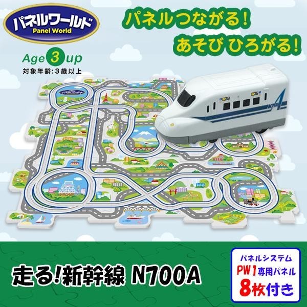 | パズルパネルでコースを自由に組んで、新幹線を走らせるパネルワールド。軽快な動きに子供たちも夢中♪走らせるコースを考えてパズルパネルを組み立てることで、お子様の思考能力も育めます。 |