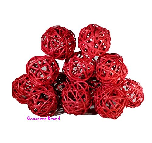 Rattan Hand Made From Thailand, For Decoration On Any Occasion, Size Diameter 2.5 inches # 12 pcs. (Red) By Conserve Brand.