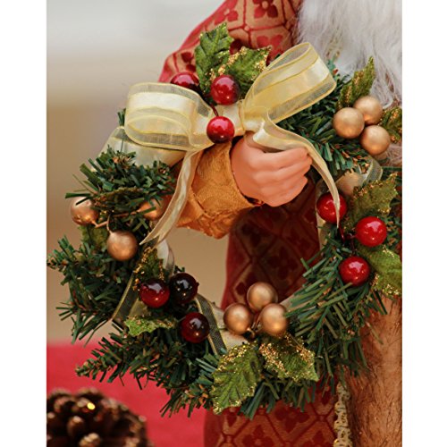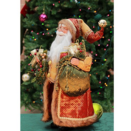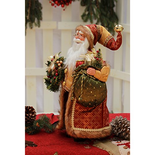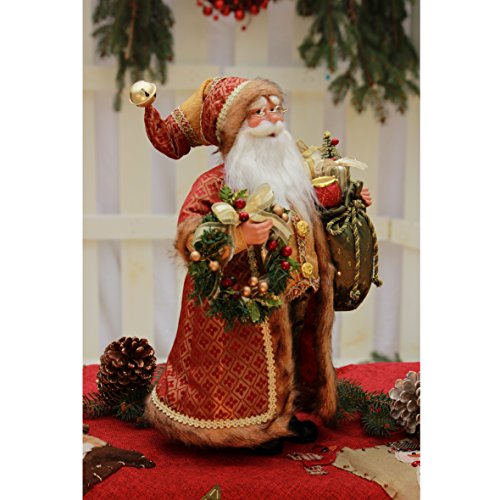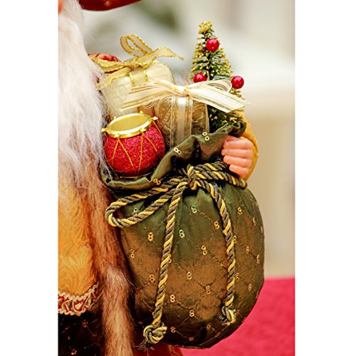 Studio : Windy Hill Collection Publisher : Windy Hill Collection Binding : Kitchen Product Description This elegant and classic Santa is bearing gifts for all. His wonderfully soft beard and mustache add to his warmth and charm and fit with his rimless glasses. His gorgeous crimson colored pattern coat, gold trim, and brown faux fur is paired with his gold vest and textured buttons. His deep green fabric toy bag is filled with gifts and matches his floral wreath with multicolored berries and gold ribbon. His solid polyresin (not plastic) boots enable him to stand firmly on any flat surface and his hat has a hidden wire to adjust to any configuration. Let this stylish and stunning Santa spread the spirit of the season in your home. 0
