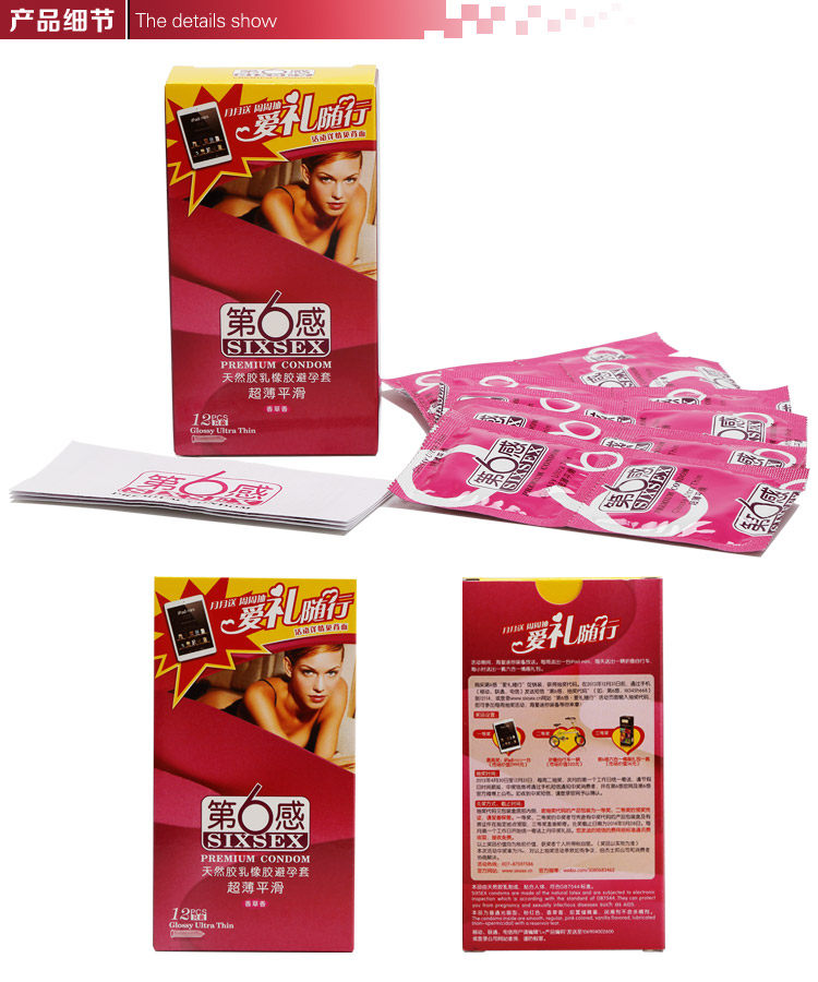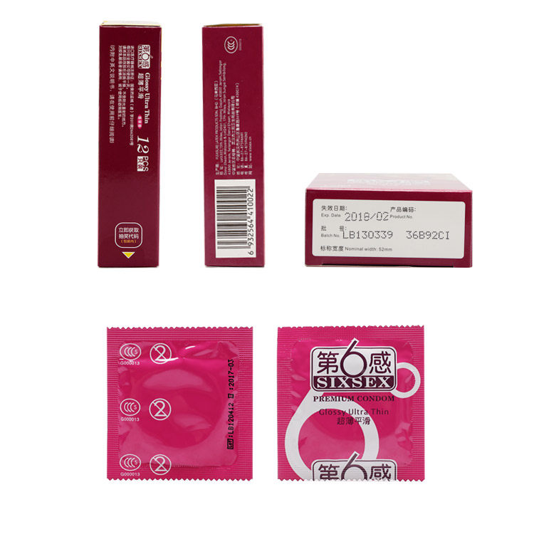 Product Name: The Sixth Sense slim smooth package total quantity (pieces): 12 Origin: China condoms firearms (X) Font Size: SFDA (into) the word 2011 No. 2662081 Material: latex Nominal Size: Medium No. thickness: slim appearance: Glossy features: silicone lubricating flavor: fruit flavor brand: SIXSEX / 6th Sense Model: slim smooth