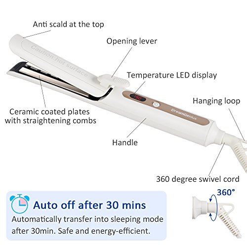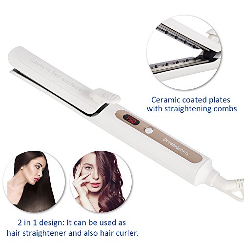 DreamGenius Hair Straightener 2 in 1 Ceramic Heating Hair Curler with LED Adjustable Temperature