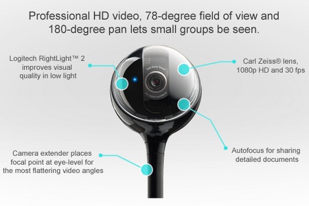Enjoy razor-sharp images from a glass lens designed with the help of an industry leader, Carl Zeiss®. Allows detailed documents, whiteboards, or visuals to be shared close up during calls.