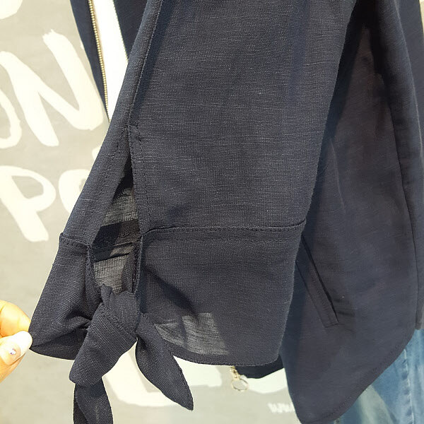 ★상품설명★ 심플한 노카라 라운드형의 집업형 린넨 점퍼입니다 소매부분 리본포인트가 고급스럽고 여성스러운 느낌을 살린 디자인입니다 가볍고 부드러운 터치감의 소재로 쾌적함을 느낄수 있는 시원한 린넨 소재입니다 자연스러운 루즈한 핏감과 적당한 기장감이 편하게 두루두루 입기 좋습니다 다양한 아이템과 함께 세련된 코디룩을 연출하여보세요