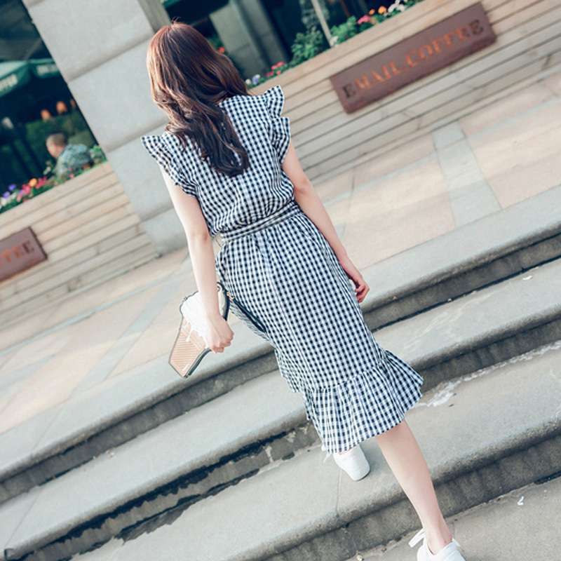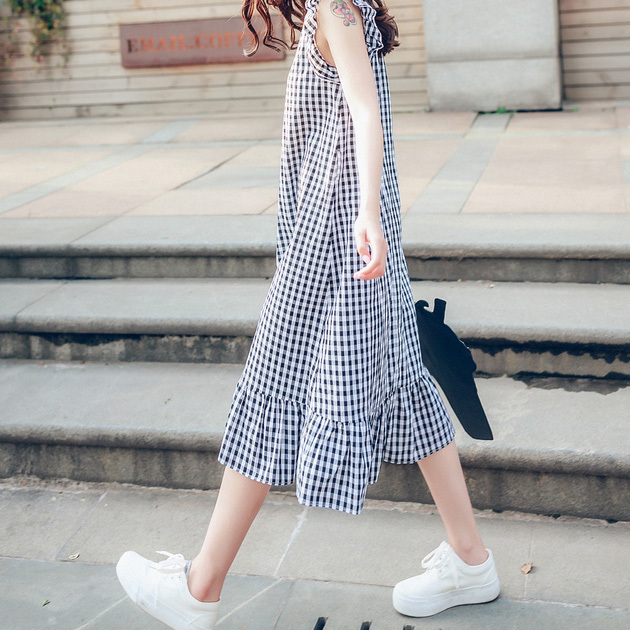 ウエストのリボンベルトや肩のフリルが可愛らしい印象に♡