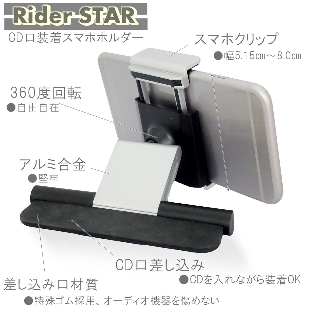 [Rider Star] Aluminum high quality CD slot / CD mouth mounted car holder (~ Japanese manual included ~)