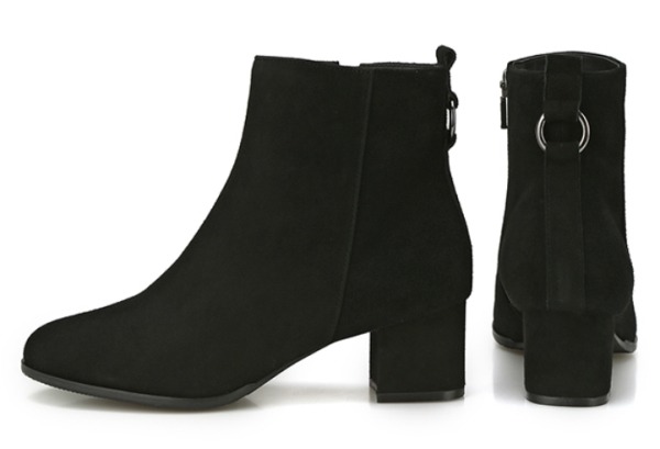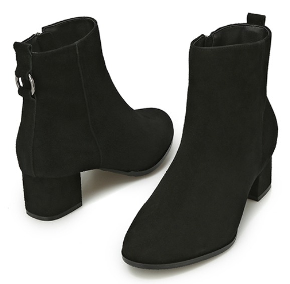 ★스웨이드 양가죽소재와 모던한 블럭 앵클부츠이며 매끄러운 라인을 포인트로 한 제품입니다.