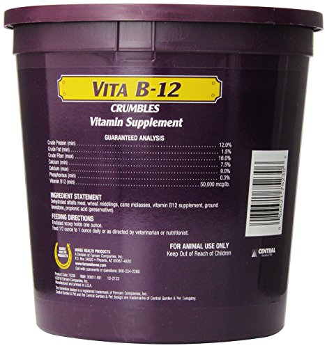 Product DescriptionHorse Health Vita B-12 Crumbles can help prevent anemia and contains 50,000 mcg per pound of vitamin B-12.0