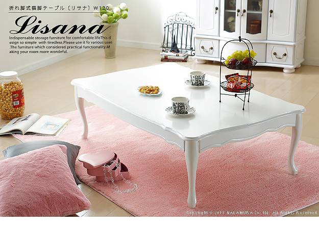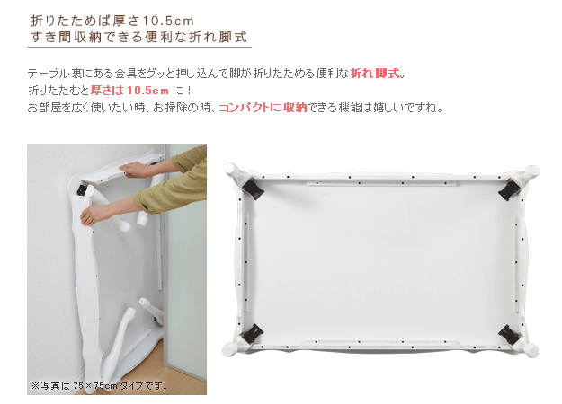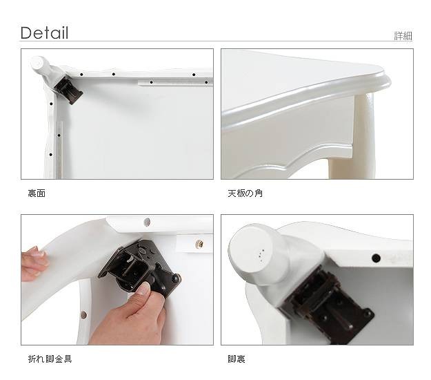 商品について:エレガントな曲線、キュートな猫脚・・・ヨーロピアン調のクラシックな印象。使わないときはすき間へ収納できる便利な折れ脚式☆