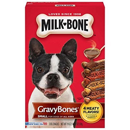 -. Binding : Misc. -. Brand : Milk-Bone -. EAN : 0884409832772 -. Feature : 4 Delicious Flavors Comes in a variety of beef bacon chicken and liver flavors that dogs love / 12 Vitamins and Minerals Fortified to help keep dogs at their best / Cleans Teeth and Freshens Breath Crunchy texture helps remove plaque and tartar buildup / Milk-Bone GravyBones feature the same teeth-cleaning and vitamin-enriched goodness of Milk-Bone Original biscuits in four delicious gravy-basted varieties your dog will love. Prepared with care by the makers of Milk-Bone dog snacks these tasty treats will give your dog the simple genuine joy that your dog gives you every day. -. Label : United States -. Manufacturer : United States -. PackageQuantity : 1 -. ProductGroup : Pet Products -. ProductTypeName : PET_SUPPLIES -. Publisher : United States -. Studio : United States -. Title : Milk-Bone Gravy Bones Small Dog Biscuits, 19 oz.(Lot 2 boxes) -. UPC : 884409832772