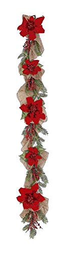 Velvet Poinsettia, Red Berry, and Burlap CHOICE of 24 in Wreath or 6 ft Garland (6 ft)