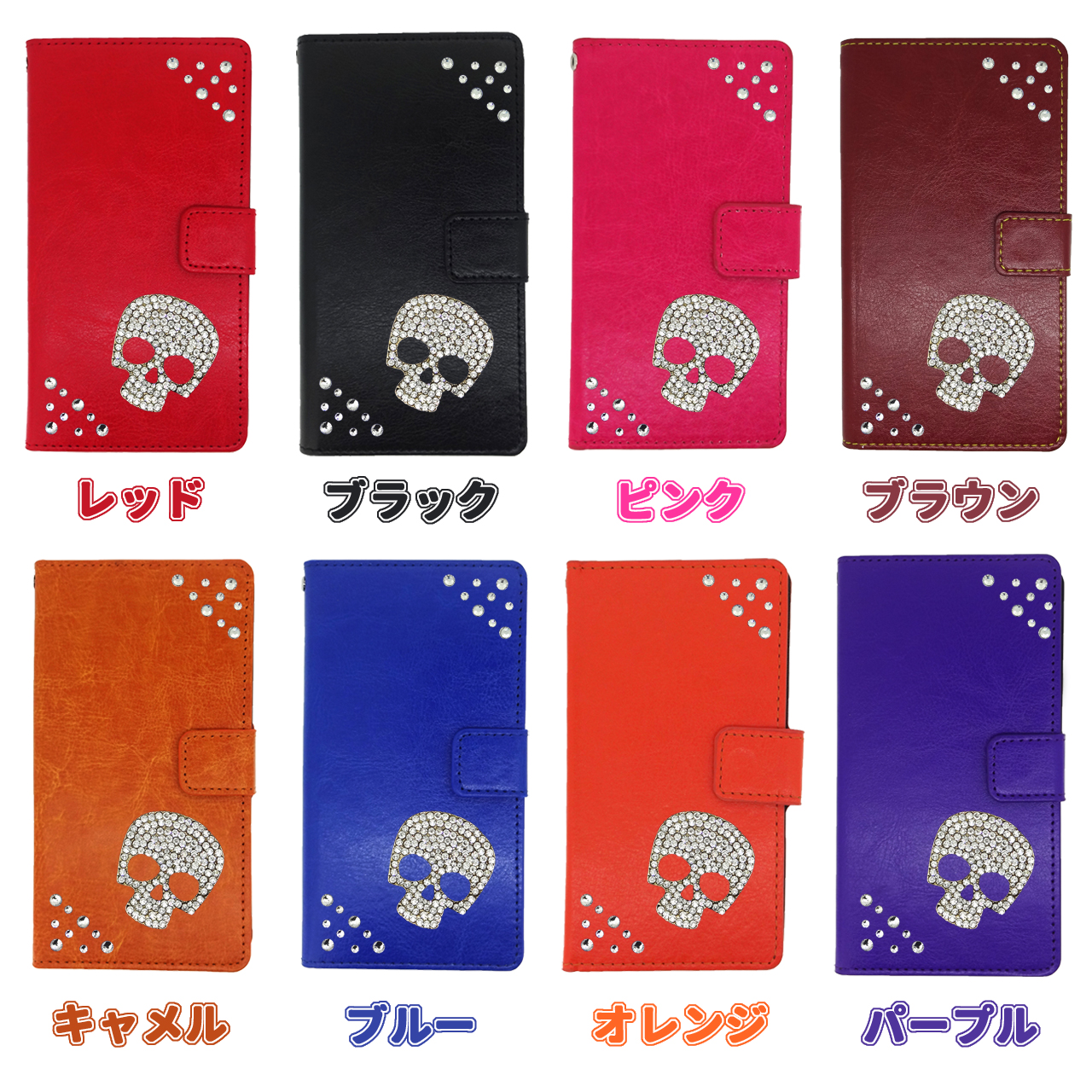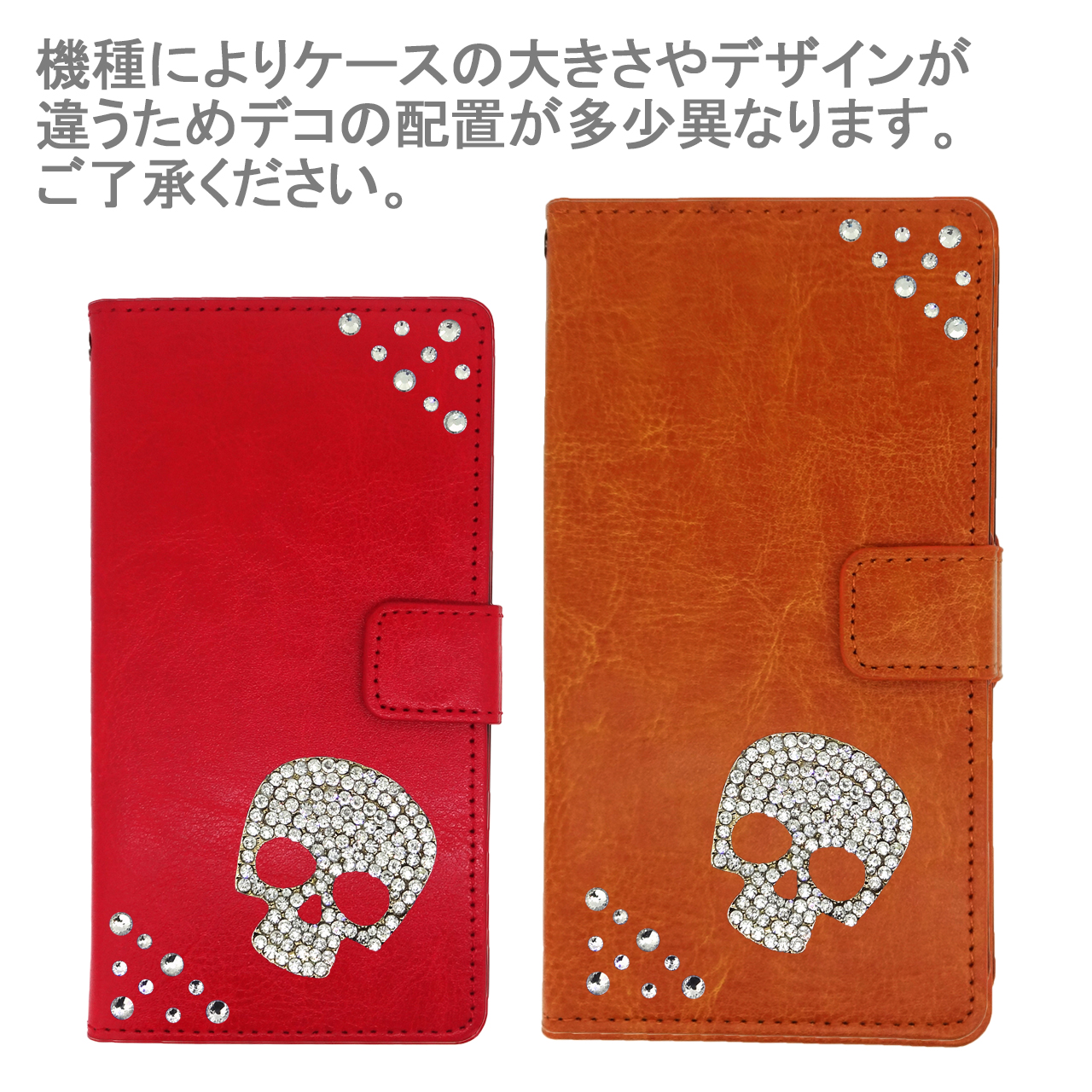 『ドクロ(スカルデザイン)』落ち着いた色合いで、使い勝手の良いカラー手帳ケースにデコレーション♪