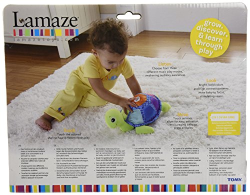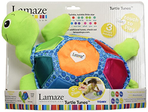 Lamaze Turtle Tunes brings colors to life with music. With a gentle touch to the soft plush shell, he plays up to seven different notes. Each section on the shell is color-coded to match the accompanying song book. Bright bold colors stimulate baby's developing eyesight. Turtle Tunes features three different modes of play; piano, horn and melody for a variety of music fun. Comes with a song book and more tunes available on TOMY.com/lamaze-tunesFeature