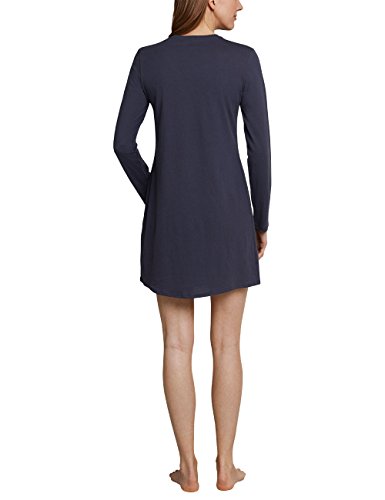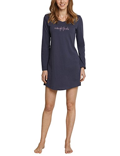 blaugraues Langarm-Nachthemd fur Damen aus der SCHIESSER-Serie selected! premium mit gemustertem Schriftzug auf der Brust "midnight florals" V-Ausschnitt abgerundeter Saum Gesamtlange: 90 cm in weicher Single-Jersey-Qualitat