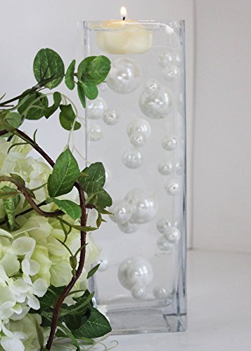 Pearls beads that appear to be floating inside the vase are a hot new trend! We are including the clear JellyBeadZ® gel FREE with your order! You will receive 4 Jumbo, 6 large, 12 medium and 12 small pearl beads AND the FREE JellyBeadZ®. All you need to do is add water and you have your centerpiece. Instructions are included so you can make your centerpiece with ease. You can add a candle, flowers or any decoration of your choice. Or you can leave it as is. It's gorgeous all on its own! We have many colors available -black, white, ivory, red and purple, and more. Ask us about all of one color of a custom mix.