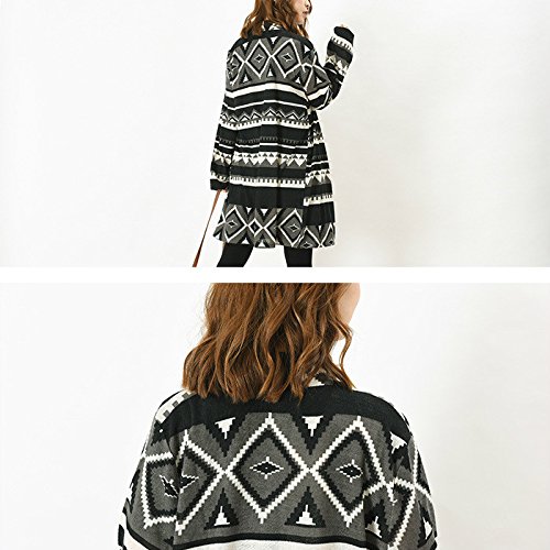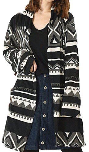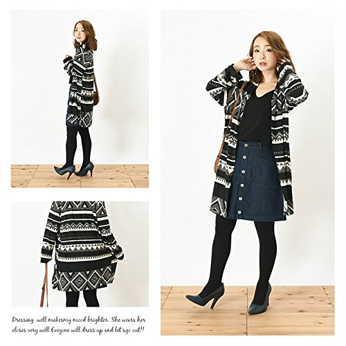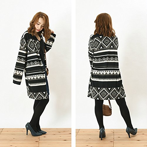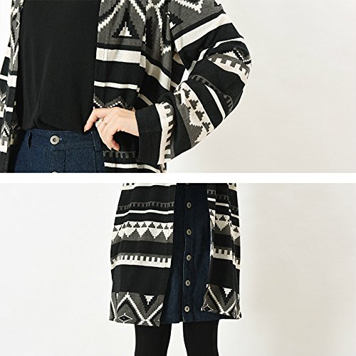 -. Title : (シャルメロディ)Charmelodie オルテガ柄 ロング カーディガン レディース トップス 長袖 トッパー ジレ 黒 系
