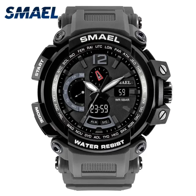| [해외] SMAEL 브랜드 주도 시계 방수 50 메터 스포츠 손목 시계 스톱워치 1702 그레이 군사 시계 디지털 시계 육군 시계 남성 |