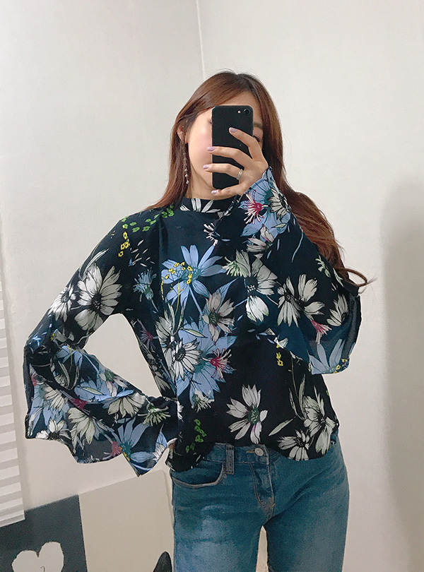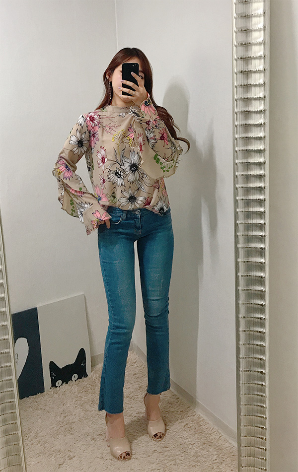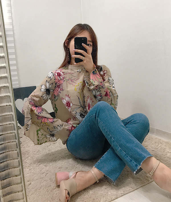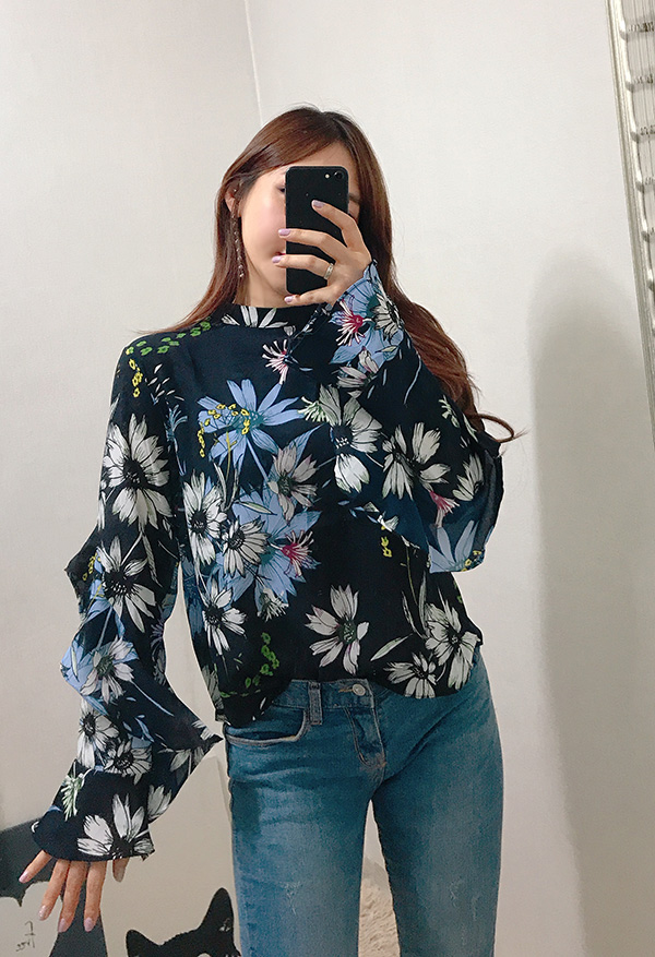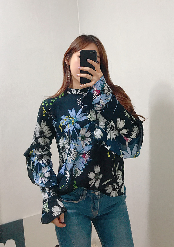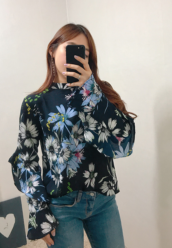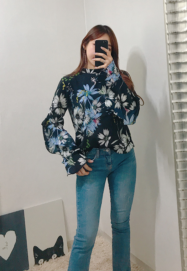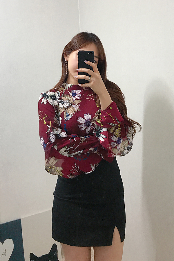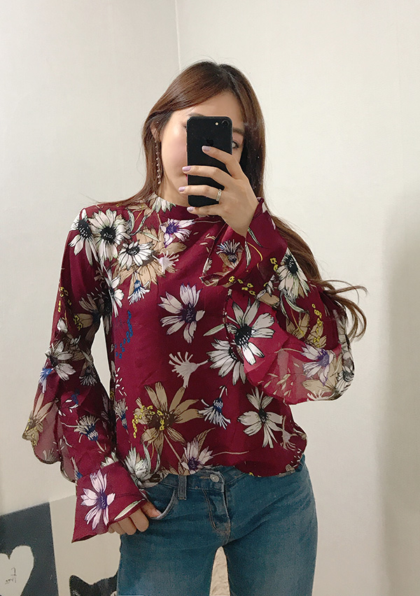 Fall Specials Ruffle Sleeves Chiffon Flower Blouse Beige Navy Wine Sophisticated Office Look