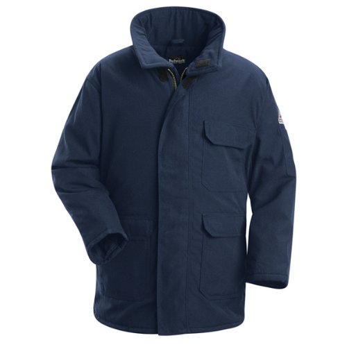 Studio : Bulwark Publisher : Bulwark Binding : Apparel Product Description Bulwark Nomex IIIA deluxe parka. Fabric made of 6 ounces, water repellant Nomex IIIA (93 percent Nomex aramid/5 percent Kevlar aramid/2 percent other fiber). Lining: 100 percent meta-aramid. Insulation package: 14.2 ounces, 100 percent aramid. Two-way, separating, extra heavy-duty Nomex, taped brass zipper, fully covered with insulated storm flap, hook-and-loop secured. Fully insulated stand-up collar. Knit storm cuff within hemmed sleeve end with hook-and-loop suppression tabs. Three large external patch pockets with hook-and-loop secured flaps (lower pockets with hand warmers). One inside chest pocket. Sleeve pocket. Deep-pleated action back. Elastic inserts at waist across back. Inside zipper guards on all zippers. Internal snow belt. Accommodates snap-on hoods, sold separately. Home wash and light soil wash. 0