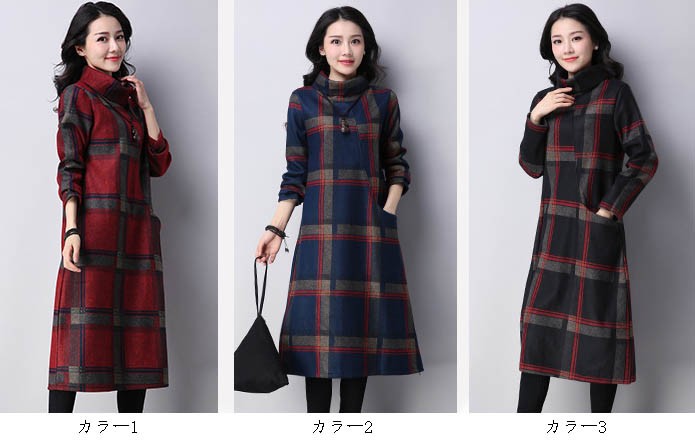 【入荷後営業日2,3日以内出荷予定 通関待ちや不良により出荷遅くなる場合はメールにてご連絡いたします。メール受信設定によっては正常に受信されない場合はございますので、 弊社からのメールを予め受信頂くようご設定くださいませ。】 ワンピ ワンピース Aラインワンピ チェック柄ワンピ ハイネック 裏起毛 防寒保温 レディス レディース 春 新作 2018レトロ風ブロックチェック裏起毛ワンピース◆サイズ:M着丈108肩幅37袖丈56胸囲94L着丈109肩幅38袖丈57胸囲98XL着丈110肩幅39袖丈58胸囲1022XL着丈111肩幅40袖丈59胸囲106◆素材:コットン、ポリエステル