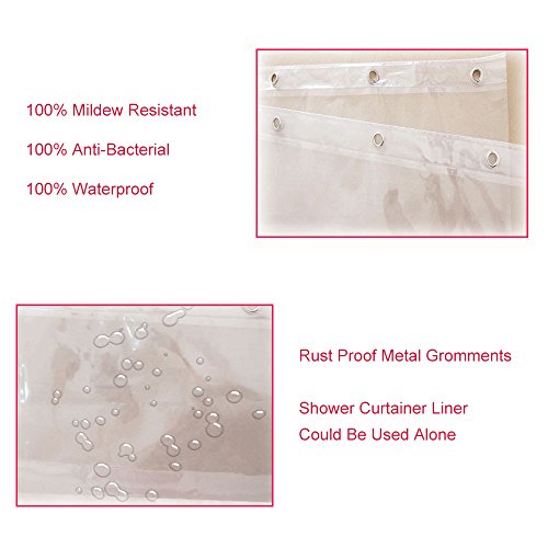 WATERPROOF: Because of the waterproof feature, it’s a standard shower curtain liner mildew resistant to keep outside fabric deco curtain being dry and clean.