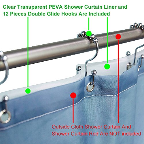 Clear Shower Curtain Liner PEVA 72x72 Inch With 12 Pieces Double Slide Chrome Hooks, LeHom 100% Mildew Resistant and Anti Bacterial Vinyl Shower Curtain Liner Transparent