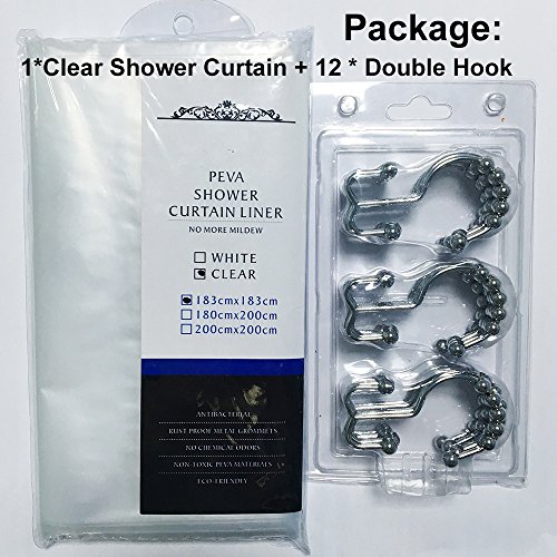 NICE COMBINATION: No need to choose 2 products, the clear shower curtain with 12 pieces double slide chrome hooks are combined together, both are high standard quality.