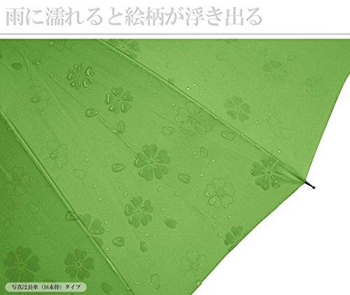 -. Title : [レザー調ハンドル] 濡れると柄が浮き出る 3段 折りたたみ傘 「桜雫」59㎝ グリーン 10092