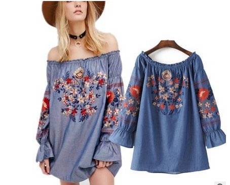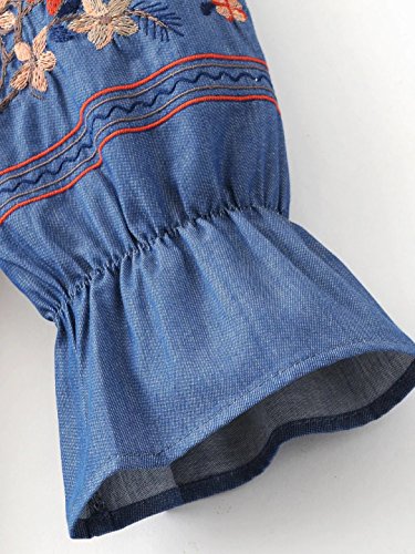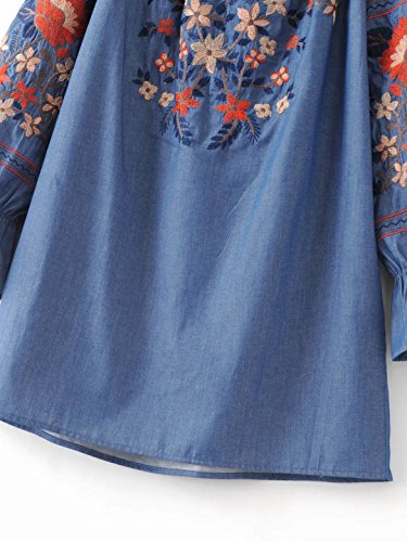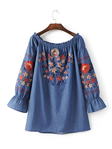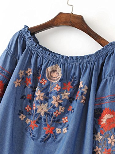 -. Title : ドゥマン demain オフショルダーブラウス レディース デニムシャツ 刺繍 花柄 長袖 SC01