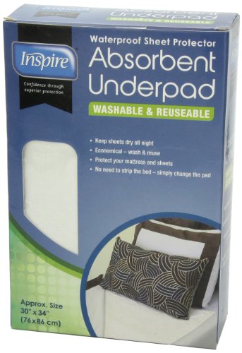 Studio : Inspire Publisher : Inspire Binding : Health and Beauty Product Description Inspire Waterproof Sheet Protector Absorbent Underpads offer an effective and inexpensive solution to incontinence troubles. These bed pads safeguard the central region of the bed where protection is essential and are washable and reusable. They eliminate the need to strip the bed, simply change the pad. They guard against moisture damage and stains on your bed and are ideal for overnight use. Soft, comfortable and latex free. K2 Health Products was founded on the concept of creating and delivering the highest quality products in an ever-changing industry. As baby boomers age, the demand for quality products which truly recognize their needs is becoming increasingly relevant and important. 0