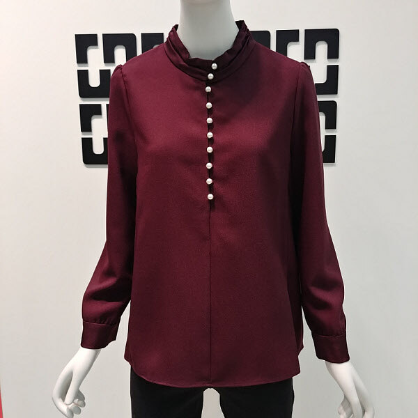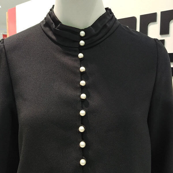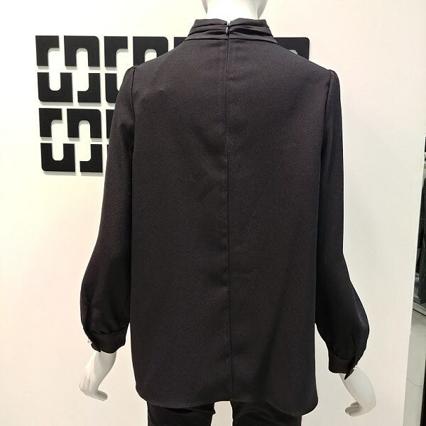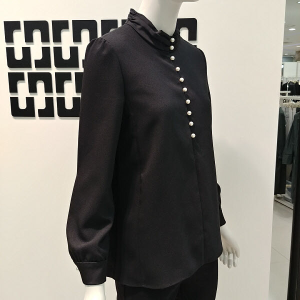 깔끔한 디자인에 커프스와 넥부분 셔링을 잡아여성스러운 정장 블라우스 입니다 잔 셔링으로 고급 스럽고 여성스러운 느낌을 주며 넥 부분이 살짝 올라와 멋스럽게 감싸 부담없이 착용하기 좋은 블라우스 입니다 위에 아우터를 입어도 단추 디테일로 포인트를 밋밋하지 않습니다26 1/2 인치 기장 입니다