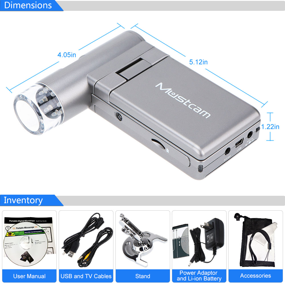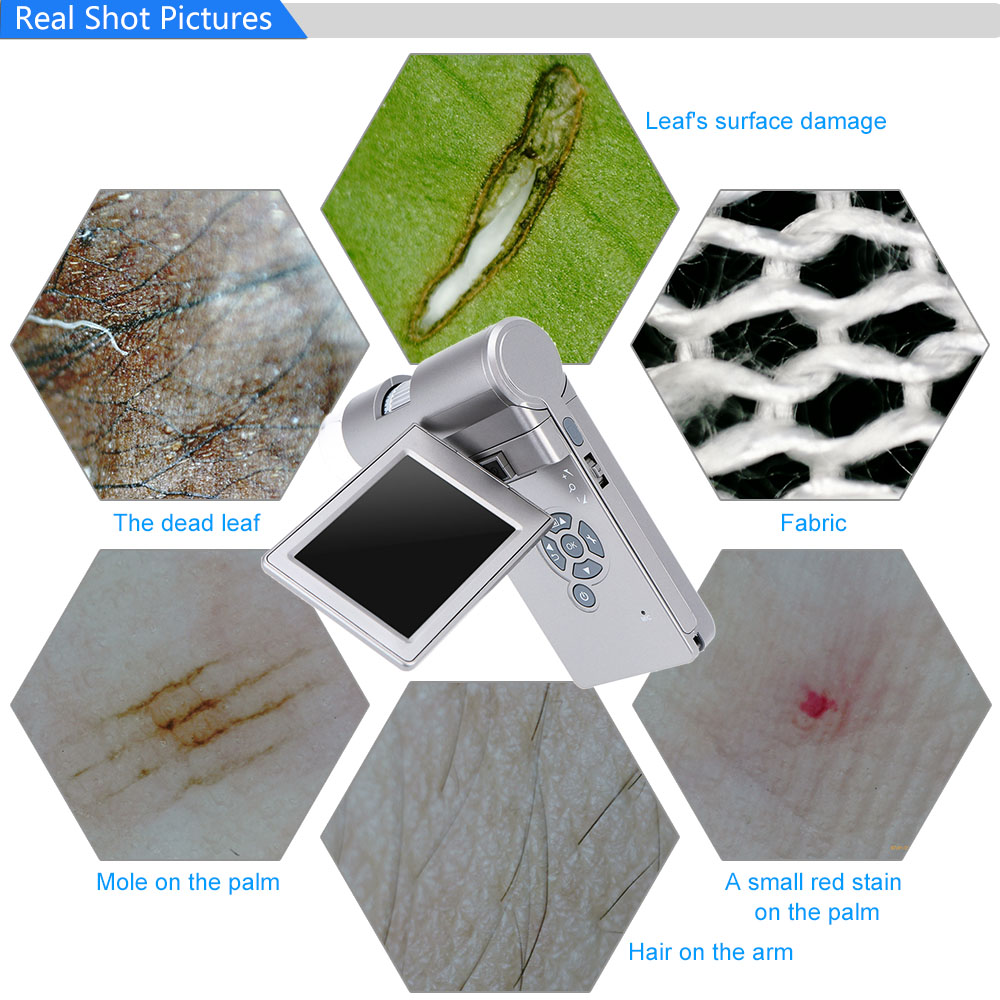 This high-tech microscope with 5Mega true resolution and 1200X Maganification is easy to use and carry. You can observe and record some small objects by photos and videos anytime anywhere. This handheld microscope is useful for students, collectors and testers to explore the small world.