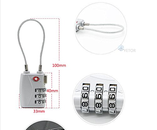 -. Binding : Office Product -. Brand : YETOR -. Feature : TSA Approved Lage Locks allow TSA officers to unlock inspect and re-lock Lage without damaging the lock / Dia. 0.12 inch and 5.5 inch length which allow threading through lage zippers much easier / 3 Digit Combination Locks offer 1000 combinations to secure your travel bags / Convenient to open the lock with the 'open' press button on the side / Can be used for locking lage, suitcase, gym locker, tool box, locker golf bag, bags, backpack, drawer, etc. -. Label : YETOR -. Manufacturer : YETOR -. MPN : YETOR -. PackageQuantity : 1 -. PartNumber : YETOR -. ProductGroup : Office Product -. ProductTypeName : OFFICE_PRODUCTS -. Publisher : YETOR -. Studio : YETOR -. Title : TSA Lage Locks6Colors3 Digit Combination Durable Heavy Duty Travel Baggage Lock, Padlock and Suitcase Lock
