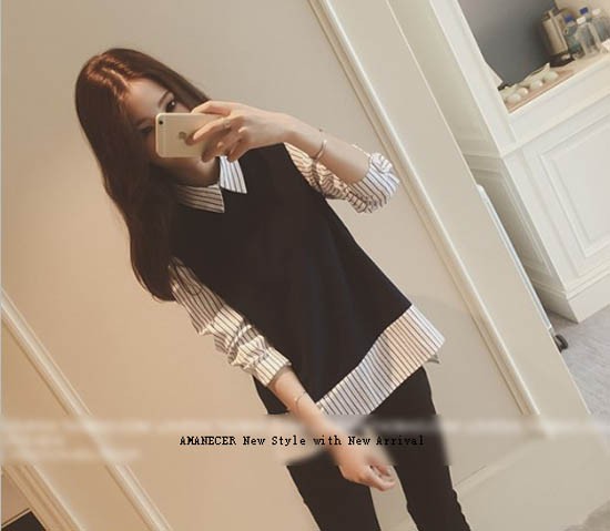 【入荷後営業日2,3日以内出荷予定 通関待ちや不良により出荷遅くなる場合はメールにてご連絡いたします。メール受信設定によっては正常に受信されない場合はございますので、 弊社からのメールを予め受信頂くようご設定くださいませ。】 トップス Tシャツ レース 切り替え ボーダー柄 ラウンド襟 長袖 レディス レディース 春 新作 2018レイヤード風ストライプ柄シャツブラウス弾力性なし◆サイズ:M着丈62肩幅40袖丈53胸囲92L着丈63肩幅41袖丈54胸囲96XL着丈64肩幅42袖丈55胸囲1002XL着丈65肩幅43袖丈56胸囲104◆素材:コットン85%+ポリエステル15%