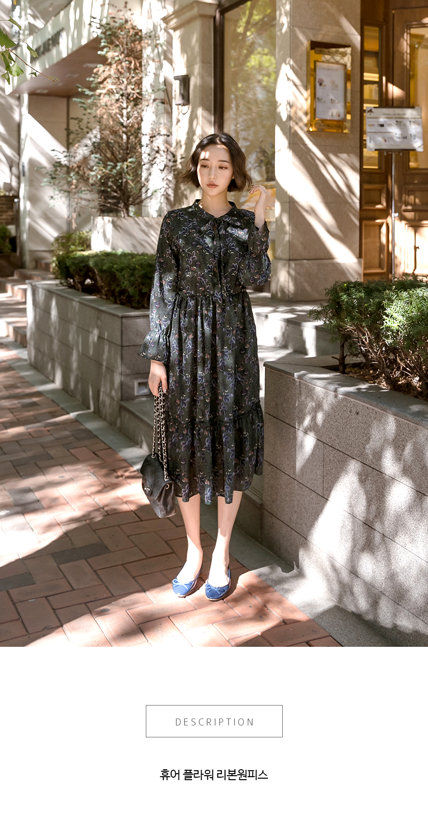 플라워 리본 플레어 원피스